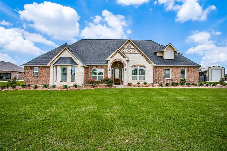 Talk about space inside and out! This home boasts 4 bedrooms, 3.5 baths, and a 3 car oversized attached garage that is on a little over one acre in the Falcons Point subdivision. All living areas are downstairs with the game room and extra space upstairs. Features include a formal dining, formal living, large family room with fireplace, study area by the guest rooms, tile and carpet flooring. Kitchen boasts granite counters, bronzed fixtures, island, plenty of counter space, cabinets, drawers, butlers pantry, and walk-in pantry. Owners screened in the covered patio by builder. Insulated metal building with three bay doors (two in front and one on the back) built, along with a covered patio on the side of the building (2015). Additionally, the property has a whole home water softener and an irrigation system that overs the sides and front yards. House interior was just repainted, carpets and house professionally cleaned. Refrigerator, washer and dryer are negotiable.