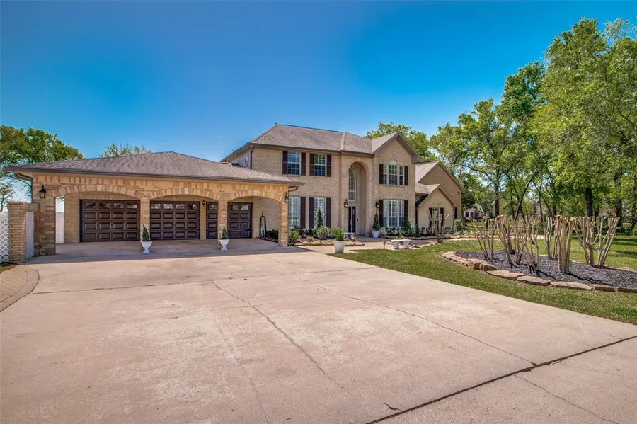 2.6 acres of Waterfront Bliss! Enjoy a beautiful sunset every evening. This custom-built home features breathtaking views of the water from almost every window. 4/5 bedrooms, 3 full 2 half baths, home office, formal dining, formal living and 2 game room spaces! There is also a HUGE custom boutique style closet in the Primary bedroom. The kitchen and formal living room are encompassed with a full wall of windows. Kitchen features all granite countertops, custom cabinetry, walk in pantry, subzero refrigerator and separate island and breakfast bar. Outside you will find a large pool, hot tub, multiple sitting areas, a deck and a sauna. The sellers have added a Generac to power this home as well. Enjoy life on the water with neighborhood boat launch, park and more. No flooding.