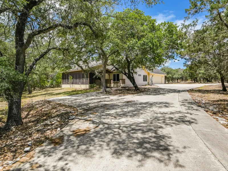 Come see this peaceful property sitting on 3.69 acres. One story ranch style home offers a massive screened in patios, 3 bedrooms plus an office, large eat-in kitchen on a beautiful piece of property. This home features RV parking with hookups, emergency generator, coffered ceilings, central HVAC, two screened patios, jetted master tub with dlb toilets, available water feature, propane, beautiful kitchen, fireplace, private electric gated entry. Exterior recently repainted, newer build so well insulated. Easy access to Hwy 281. Come out and make this part of Texas yours.