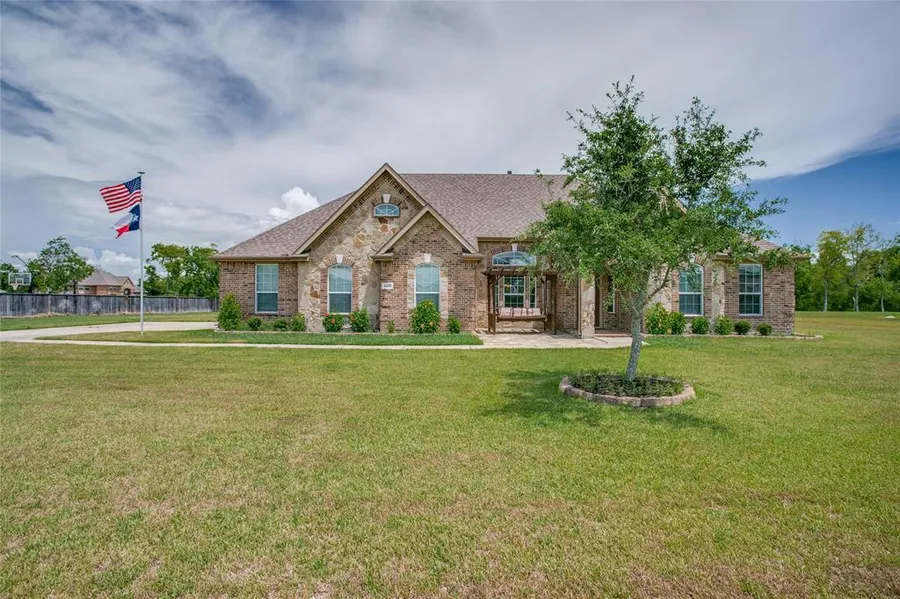 Don't miss this large 1 story home on 1.37 acres in highly sought after Sellers Station in BHISD. Beautifully built with brick and stone exterior, this home also features 3 car garage (not tandem) and extended back porch with above ground pool with extensive decking. Inside you will find 4 bedrooms with split floor plan, 3 bathrooms, open kitchen, family room, formal dining, breakfast area and office. Home has high tray ceilings with crown molding, recessed lighting, tile floors in common areas, and gorgeous stone fireplace with gas connections. Kitchen has stainless steel appliances including gas range with separate oven, dishwasher, counter depth refrigerator and built in microwave. The Sellers Station neighborhood has oversized lots for ample space between you and neighbors. Come see this one today!