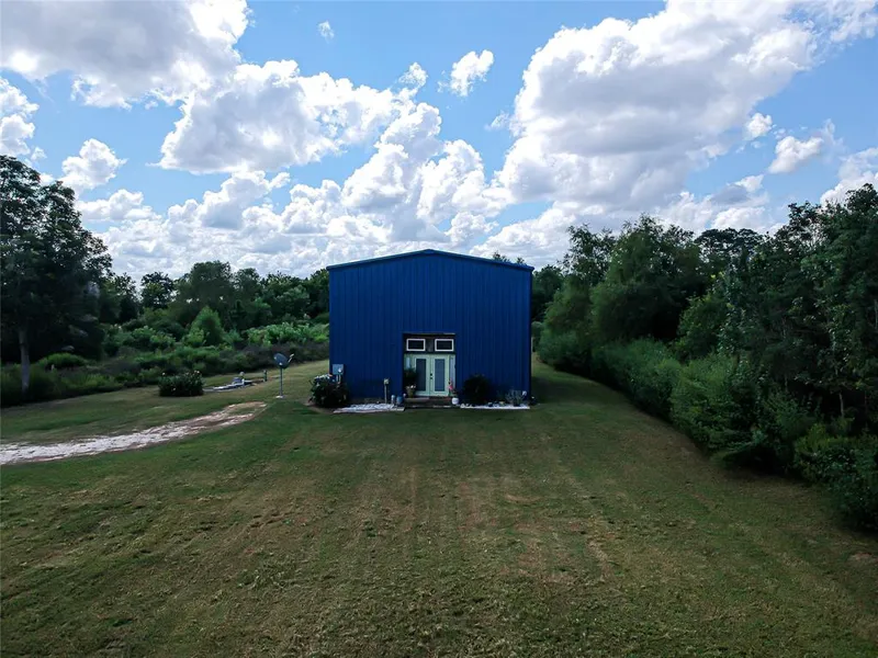 This adorable 1200 sq ft home is nestled on 3 acres and offers 1 bedroom and 1 bathroom (wheel chair accessible ) down stairs with a 600 sq ft unfinished loft that could be turn into a second bedroom and bathroom or a huge game room or home office. Upon entering you will see the awesome kitchen to your right offering stainless steel appliances, stainless steel countertops with a huge restaurant style sink offer 3 dividers and opens up to the spacious family room which is perfect for entertaining. There are 3 built in safes, 2 inside the wall and 1 in the floor. You will love the stained concrete flooring throughout the 1st level. There is 2 roll up doors, 1 in front and 1 in the back of the home. Outside you will enjoy the peaceful sounds of nature on your 3 acre tract which also offers a pond for you to fish. This home could be used as deer camp, employee housing, corporate housing, end...