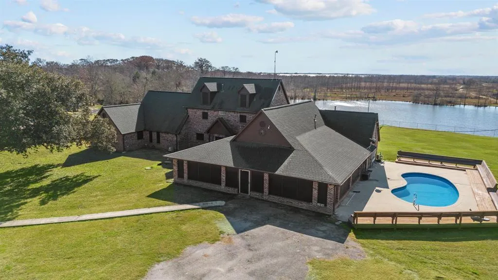 We're calling this one "BEST HIDDEN SECRET" - So much VALUE in this generous 3 story home! There is no pond on this property; view only!! 6 (or 7) bedrooms, 6.5 bathrooms, fireplace, and in-ground pool are just the start of the features here. Each bedrm has a full bath, except 1 and it's across the hall from a half bath. Huge Family Room has hardwood floors and is trimmed with slate tile. Fully enclosed, screened front porch, granite counters in kitchen and on huge island (with storage below). Fully built-out bar looks in to dining room. Large utility room w/ sink and extra granite counter space. Primary bedroom has two full bathrooms: one with a slate shower and one with a jetted tub; both have big walk-in closets. Second floor bedroom has lots of storage and large walk in closet, 3rd floor game room (or 7th bedroom) has full bath w/ slate shower and walk in closet. 30X6 covered back patio is also slate. Pond views from neighbors property; outdoor seating around pool. WOW!