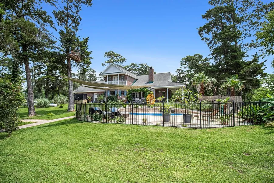 WELCOME HOME! A private oasis sitting on 5 acres with access to the Cedar Bayou leading into Trinity Bay - bring your boat! A wonderful updated 2 story home with Italian tile floors, an amazing kitchen that features blue pearl granite countertops, a modern open floor concept with natural light and high ceilings. The living room with fireplace gives you an indoor/outdoor feel. A custom-built Scandinavian Sauna to relax and unwind. A two person jacuzzi awaits you in primary bathroom with quartz counter tops and large walk-in-closet. Upstairs you will find two well-appointed bedrooms with amazing balcony views, a shared bathroom and a large game room. An oversized two car garage with storm doors allow plenty of storage. The outdoor oasis features a fenced in fiberglass saltwater pool with hot tub, large 6 stall barn with workshop and barndominium apartment. Fenced in chicken coop and duck p...