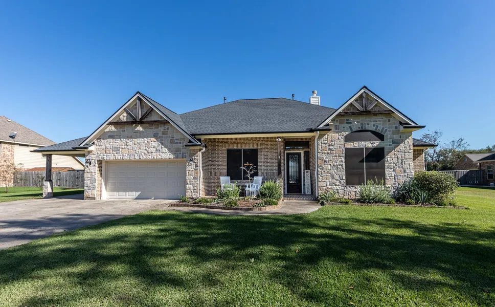 Huge price reduction on this Stunning 4/3/3 custom home sitting on approx. 2/3 acre. Zoned to acclaimed Barbers Hill ISD. Light, bright & open floor plan with plenty of room for indoor & outdoor entertainment. The huge 4th Bedroom could be in-law suite. This beauty features desirable upgrades & updates: Daikin R-32 mini-split a/c in garage, cabinets & sink in garage, double door access to backyard from garage, outdoor fireplace, custom Pergola, swing, extended patio & designated BBQ area. Roof replaced 2022. Sellers replaced the 5 ton HVAC 3/24, refrigerator 11/22, dishwasher 6/24, updated most light & water fixtures, both garage doors w/insulated, wind bracing, springs & openers. They added blown insulation above the garage, solar screens, backyard fence w/16' double gate, raised garden beds. Fresh paint and so much more! Massive backyard with plenty of room for a shop & pool! Call toda...