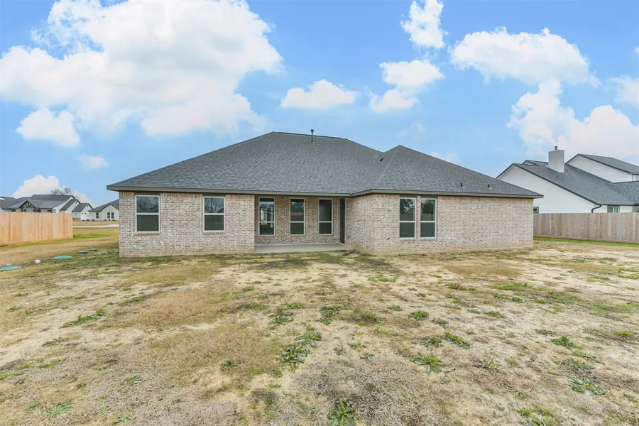 Beautiful 4-bedroom, 2,635 sq. ft. home on a spacious 1.07-acre lot in the peaceful Winfree Bayou Estates. Featuring the popular Travis floor plan with an open layout and high ceilings that create a bright, airy feel—perfect for everyday living and entertaining. The kitchen and utility room offer Omega Stone countertops, with Marlana countertops in the bathrooms, upgraded cabinets, and vinyl click plank flooring throughout. Enjoy relaxing evenings on the covered back patio overlooking your private retreat. Surrounded by large lots and custom homes, this property offers privacy while remaining close to schools, shopping, and conveniences. A perfect blend of comfort, space, and tranquility—schedule your showing today!