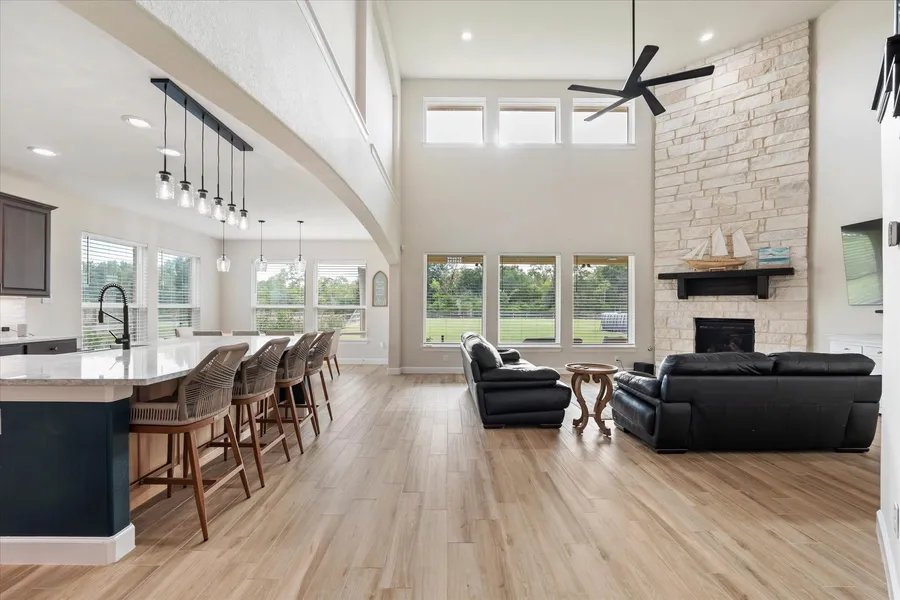 Welcome to 14927 Starwood Dr., a beautifully updated 4,040 sqft home on 1.05 acres in a quiet cul-de-sac in Thunder Bay, within top-rated Barbers Hill ISD. Recent upgrades include fresh paint, wood-look tile, plush carpet, granite counters, stylish lighting, and GE Café appliances—including a 42" smart fridge and 36" gas range. Entry features soaring ceilings, formal dining, private office, and open-concept living. The spacious kitchen with oversized island flows into the family room—perfect for entertaining. The primary suite boasts a large walk-in closet, double vanities, a soaker tub, and oversized tiled shower. Upstairs your game room is ready for activities and spilt floor plan with 4 bedrooms and 2 full bathrooms offering their own vanity areas. Your backyard awaits your final touches with plenty of space to make it your own!