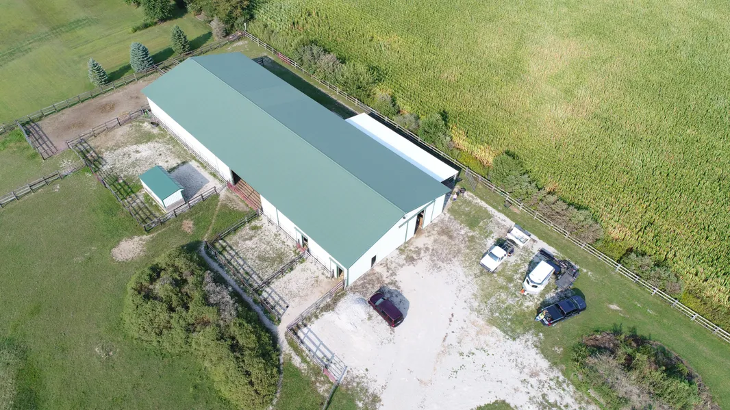 Check out this scenic horse farm featuring 4 fenced acres with creosote finished wood fence that has is Amish built. 12 year old 60x160 shed with 15' walls with kick boards and translucent panels, Indoor riding arena, 5 stalls with fans over them, 2- 10x16 portable Amish Built Sheds with Insulated A/C, 5 hydrants, 2 wells - 1 hand pump, finished turnout lots that are mud free, and 200 amp service. Call us directly at 217-202-7950 today to schedule your showing!