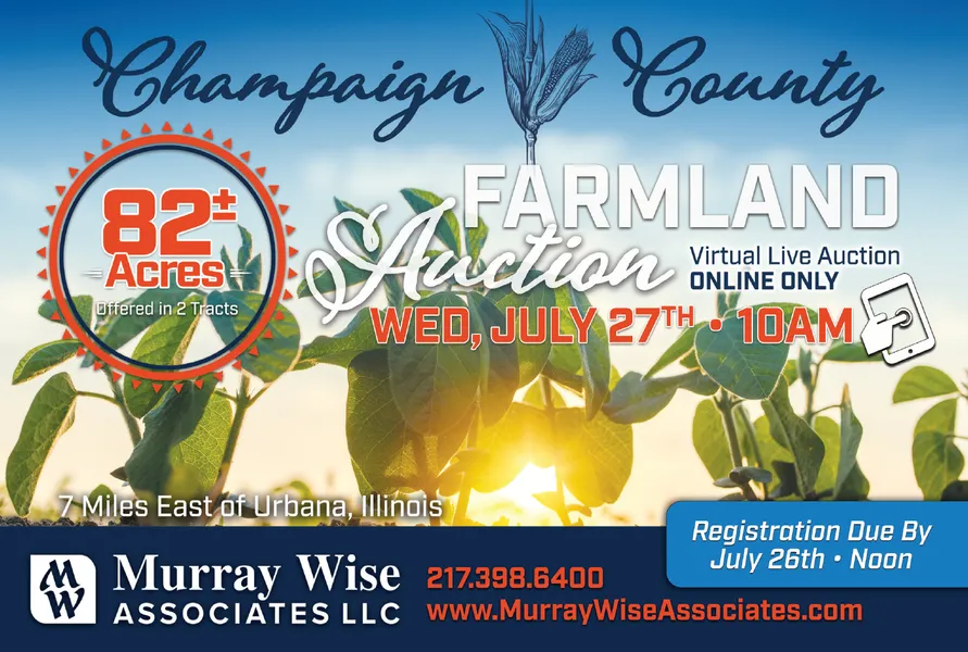 The entire property to be offered at the Auction consists of approximately 82 acres located in St. Joseph Township, Champaign County, Illinois and consisting of two tracts described as follows: