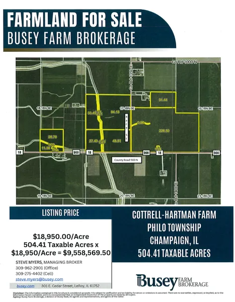 Prime Champaign County farm land for sale just 5 miles from Champaign-Urbana. The farm is lease free for the 2026 crop.