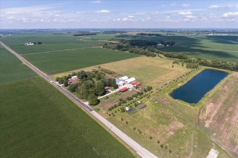 Prairie Fruits Farm and Creamery is a rural residence located just 10 minutes north of the UIUC campus. This property is currently operating as home to a multi-faceted farm business producing Illinois' first farmstead, nationally award- winning goat cheeses, as well as hosting thousands of visitors each year to on-farm events and farm to table offerings. The welcoming farmhouse is a custom log home, built with an open floorplan, loft and wrap-around porch, perfect for viewing the magnificent prairie sunsets in full view from this location. The Primary bedroom suite is on the first floor along with a second bedroom, bonus room, which currently holds the hot tub, second full bathroom, with walk-in stone shower, and updated Kitchen, dining and living rooms. A wood burning stove adds to the cozy feeling, while the soaring wood beam ceilings provide visual appeal. Upstairs you will find a 13 x 19 ft loft area with skylight, half bath and third bedroom with plenty of shelving and attic-type storage. Outside, you will find several outbuildings. The main 100' x 55' pole barn houses the farm store, a commercial kitchen, cheesemaking facilities, and goat dairy as well as multiple offices, work spaces and bathrooms. Four additional barns are perfect for housing livestock and/or farm equipment. A paved 52' x 27' timber-framed pavilion, adjacent to the perennial herb garden provides shelter and space to entertain outdoors. Two acres of the farm are planted in organic peach, apple, pear, and cherry trees and the remaining acreage is perfect for pasture, recreational space or gardening. There is plenty of space to expand and make your own dreams come true. Please call for additional information on this one of a kind property.