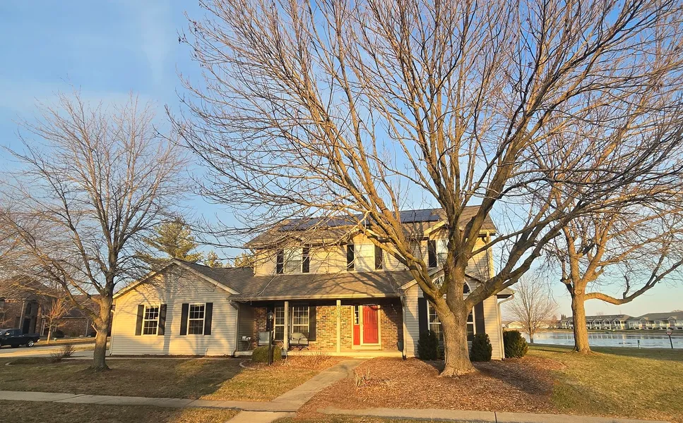 Are you ready for these views! Location Location Location! PREMIUM corner lot overlooking the water. Over 2400 sq ft with loads of great space! The main floor has a front living room/office/dining room/bonus room option. The eat in kitchen comes with all appliances, a nice pantry closet and ample cabinets, that adjoins the family room with a cozy fireplace. The adjoining sunroom has wonderful views of the water and access to the fenced back yard and garden shed. Main floor laundry. The 2nd floor has all of the bedrooms! The Owner's Suite includes your own spa with a jetted tub, separate shower, double sinks AND an XL Walk in Closet. There are 3 additional bedrooms and 2 full baths down the hall. Check out the OVERSIZED 3 Car HEATED Garage with a NEWER Lennox Furnace and extra space. Lennox HVAC is throughout the house on AC and furnace too, so great quality. Updates include: Roof, Furnace and AC (2022), Interior Paint (2025). Get ready to SAVE on electric bills for the NEXT 25 YEARS, because the seller has Solar Panels PAID OFF for the next buyer! Yep, your electric bills are next to nothing now and they area all yours! With the rising electric costs and Jan 2026 bill signed that will raise rates more, you don't have to feel guilty if you Leave the Lights on.