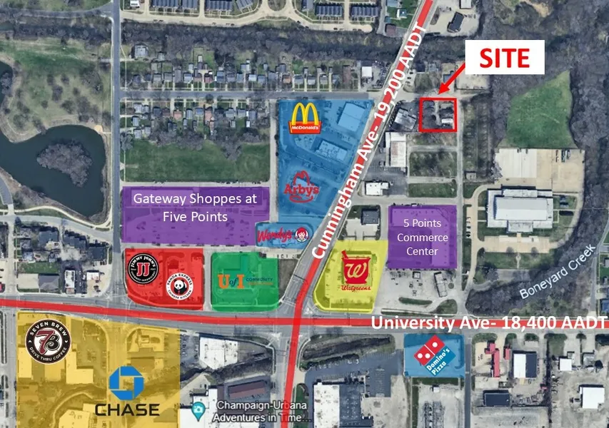 507 Crystal Lake Dr. is a .35 acre lot, with a single structure ready for development. Formerly part of a larger grouping of parcels that included a now-cleared mobile home park, the site is zoned B-3, General Business, offering versatile potential for various uses. Utilities are already in place, and the location benefits from convenient access just off the Cunningham Avenue/Rt 45 commercial retail district in Urbana.