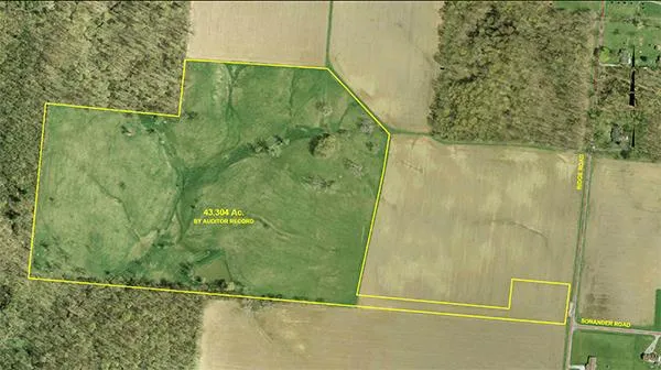 43.30 acres of land in Champaign County, Ohio. Absolutely beautiful, gently rolling hay and pasture land. Totally fenced with pond. Secluded, approx. 800 ft. off road. Must see to appreciate. Super building sites and great lifestyle farm.