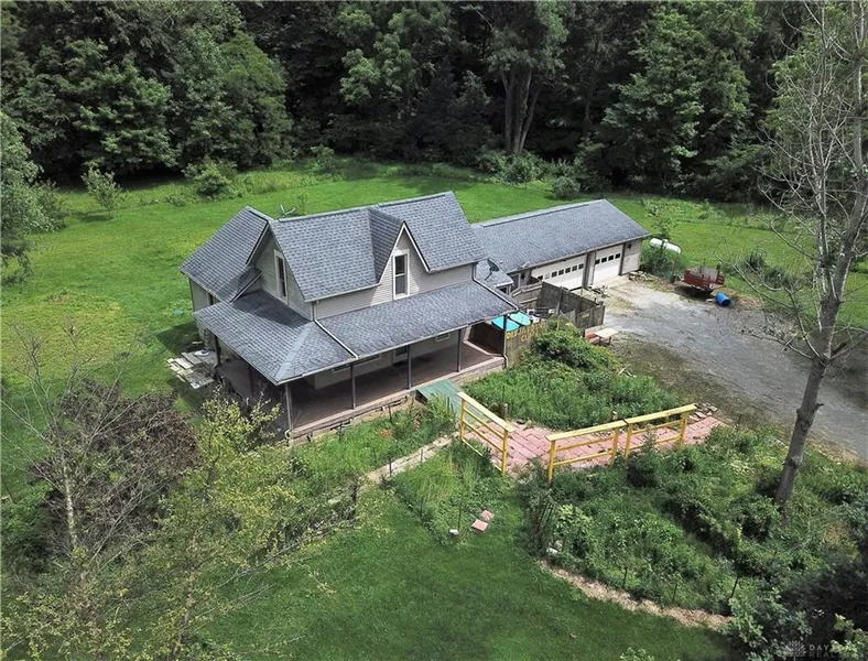 Enjoy this serene 2+acres with wooded area. Sit on the wrap around porch off the main routes. New Furnace 2018, updated electric 2017, new roof 2012, reinsulated 2010, water softener 2015, water heater 2015, basement is poured cement walls with a walkout door, 3 bedrooms, 2 baths, 3+attached garage. The basement has some walls up but not finished flooring or ceiling. Lots of perennial flowers on the property. Property is fenced for pets and chickens. Also, Includes work shed and chicken coop. Laundry can be first floor or basement.