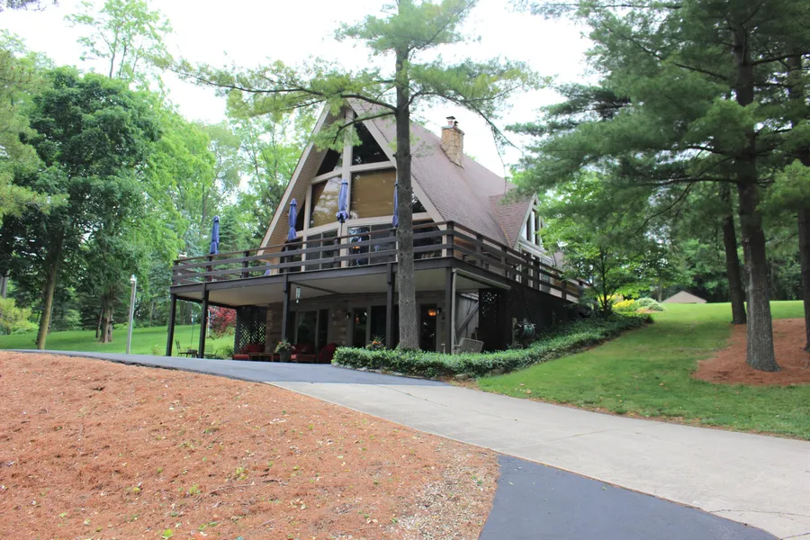 Perched up on a hill sits this stunning custom built one owner A-frame surrounded by mature pines. On the main level you will find the gorgeous kitchen complete with granite counter tops and stainless appliances. The kitchen is open to the living room that has hickory hardwood floors and an amazing view. Two spacious bedrooms, a full bath, and utility room are also on the main level. The top level has the master bedroom and bath that overlooks the kitchen and living room. In the lower level you will find an additional living space and wood stove that is perfect for those cold winter nights. Outside there is an above ground swimming pool partially surrounded by a sizable deck. Need space? There is plenty of storage in the two car detached garage, 16x20 shed, and an additional 12x12 shed.