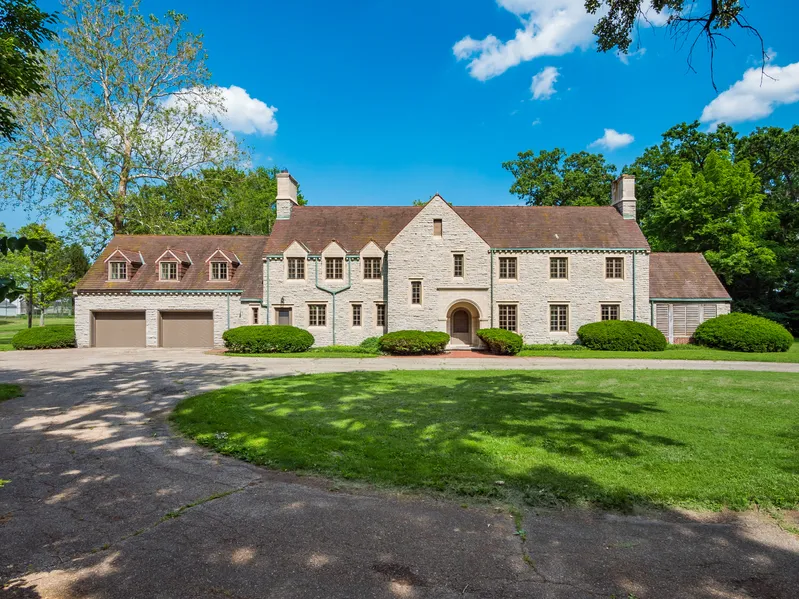 Magnificent country estate ideally situated in Urbana, Ohio. This stately English stone manor home is an amazing home. Enriched by the legacy of aviation lighting industrialist Warren Grimes, this home boasts 4 bedroom ensuites, soaring ceilings, beautiful custom woodwork and staircase harvested from the estate. The baronial sized Living room lead to a wonderful 3 season porch. A courtyard ties in the porch and formal dining room. Updated Kitchen with Mahogany cabinets, new appliances and updated tile flooring. A recent renovation includes the new kitchen, bringing the laundry to the second floor and a new primary suite bath. Located just 45 minutes west of Columbus and 35 minutes east of Dayton. Ideally situated on 3.662 acres of privacy.