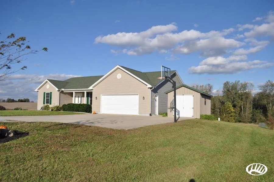 PRICE REDUCED! Here is a beautiful three bedroom, two full bath home with a two car attached garage resting on a quiet country road. Sunsets and sunrises are views you could enjoy on a daily basis from the covered front porch to the composite back deck. As you enter the front door, you'll see a beautiful updated spacious kitchen, leading into the open living area with a fireplace. The master suite has a walk-in closet and master bathroom with a whirlpool tub and separate shower. Two additional large bedrooms make up the rest of the living space. The full basement is plumbed for a bathroom as well as a walkout that could be finished for additional living space or a recreational room. In addition to the garage, there is a small utility shed that provides more storage for lawn and garden equipment. If you are looking for a very low maintenance home in the country, look no further. Call or t...