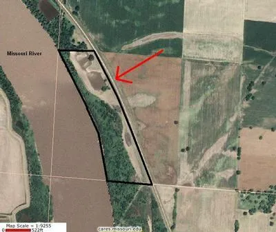 Missouri River Hunting Land, located along the bank of the Missouri River; Premium Hunting! Property has 24 acres of cropland for income & food plots, woods/timber & duck lake. Trophy Deer, Waterfowl, Turkey, fur bearers, you name it; price for quick sale.