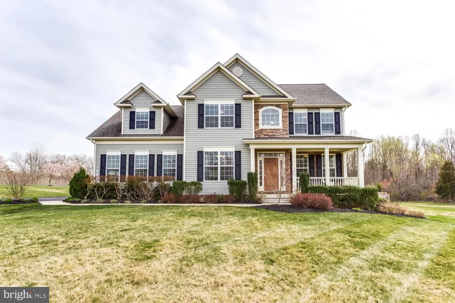 Beautiful, custom-built 3600sqft+ colonial with 4 bedrooms, 2.5 bathrooms, a gourmet kitchen with cream shaker soft close cabinets, granite countertops, stainless steel appliances, an eat-in area and a large kitchen island. Directly off of the kitchen you will find the large family room with a beautiful stacked stone gas fireplace and a natural light-filled sunroom which are perfect for entertaining. The sliding door in the sunroom leads to a sprawling composite, low-maintenance deck that is ideal for grilling, outdoor dining and relaxation. Large master suite with walk-in closet w/built-ins, an ensuite bath with glass and tiled shower, double-vanity and soaking tub. Spacious finished basement features luxury carpet, recessed lighting, an office and recreation area, a fitness room, several large storage areas, framed room with rough-in for bathroom and a door that leads to the side yard. The property is sited on 3.2 flat acres that offers professional landscaping around the house and plenty of room for a pool, barn and garden in the lush green grass. You won't want to miss this beauty! The subdivision of beautifully built homes is conveniently located off of Route 5 for an easy commute to NASPaxRiver, AndrewsAFB, Washington, DC and many other locations!
