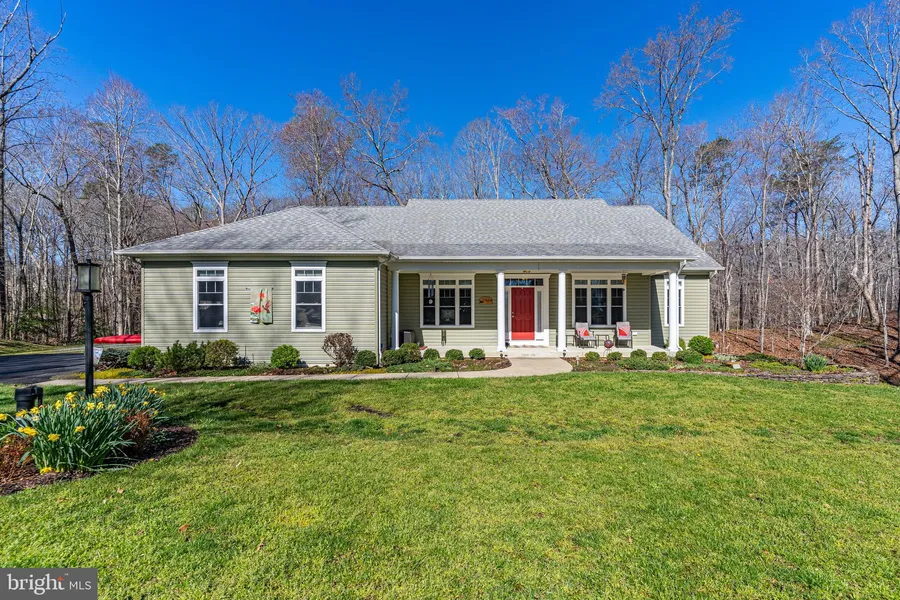 Hughesville, Canterleigh Subdivision, Custom built Rambler by Wilkerson Construction on 3.9 acres. Nicely nestled in and among the woodland with quiet views of the nature that surrounds. This 3 bedroom 2.5 bath home with den is in excellent condition. This home Looks as if it was built and finished just yesterday. Comes with Full basement with walkout from a sliding glass door. Has a 2 car side load garage from a private asphalt driveway. The front porch has a nice sitting area for evening sits in this quiet setting. Entering the Front door to the foyer is an Open floor plan with Hardwood maple floors with 9 ft ceilings that give way to a nice open feel. he view from here is a open look and the view of the back yard is evident from a clear glass door that leads to the back porch.