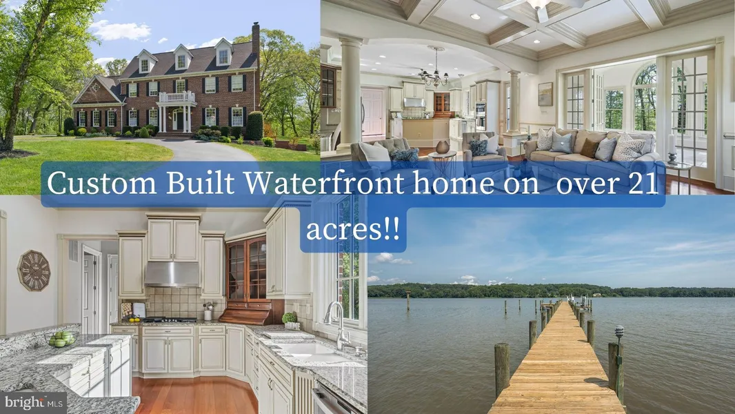 Custom all brick waterfront home situated on 21.55 acres! This all brick beauty will capture you as soon as you pull in the driveway.... Enjoy 4 finished levels, 6 Bedrooms & 4.5 Baths, totaling almost 7000 sq ft of living space.. Entering the foyer, you will immediately notice the details that went into this home....hardwood throughout the main & upper level, wide trim, crown molding, coffered ceilings, wainscoting, and so much more! The gourmet kitchen will impress any cook...granite counters, breakfast bar, stainless appliances, gas cooktop, and backsplash...just to name a few. A large family room off the kitchen features floor to ceiling built ins, fireplace, and french doors to the sun room with views of the water. Formal living & dining room both have a fireplaces. Make your way upstairs where you'll find the master suite with hardwood floors, separate sitting room, huge WIC, and a...
