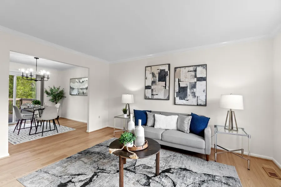 What in the Joanna Gaines, Hearth & Hand is this lovingly maintained updated split level home…stop the car! Presenting an extraordinary property that effortlessly fuses classic refinement with modern practicality. This distinguished three-bedroom one full and two half bath residence boasts nearly 2,000 square feet of living space spread across two meticulously designed levels. As you step inside of this split level foyer, the entrance welcomes you with freshly painted walls, newly refinished and installed light oak hardwood flooring and light fixtures, creating an atmosphere of timeless charm.The main floor strikes a harmonious balance between formal elegance and relaxed modern living. The mix of open concept defined spaces provide a proper living space that flows into an open concept kitchen and dining, offering the perfect setting for hosting gatherings and creating cherished memories. The heart of this home, the thoughtfully designed kitchen featuring gleaming stainless steel appliances alongside ample cabinetry and newly installed fresh white solid surface counters provides the canvas for culinary creativity. The intelligently designed space allows for the flexibility to add an island should one wish, or simply keep as is for an airy feel. Entertain this fall using the large deck just off the dining space. The opposite side of the main level maintains two generous sized bedrooms that share a hall bath and the primary bedroom is in the rear of the home with a half bath, overlooking the large back yard- all with brand new plush carpeting. Journeying to the lower floor, discover a warm and cozy second living space with a brick fireplace perfect for cooler nights. This level maintains a flexible den space in addition to half bath and laundry space. The inclusion of a one car garage adds practicality and convenience to this versatile home. This residence is situated on an almost 2-acre lot which provides privacy and serenity all while being an easy commute to DC and VA. This property is not just a home; it's a testament to the harmonious blend of refined living and contemporary convenience. Having only had one owner - start your next chapter here in this well maintained home. Grants are available and property falls within FDA loan tract, as your lender for more info!