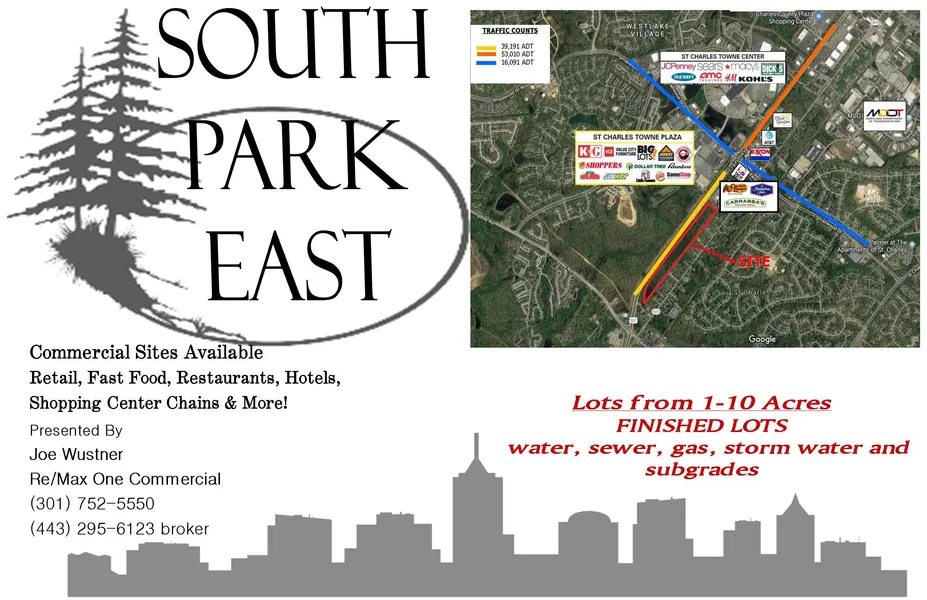 A right of way called Maryland Avenue is to be built thru the pad sites for easy access to Rt. 925 from Rt. 301. These pad sites are for retail, fast food, restaurants, hotels, shopping center chains and more!