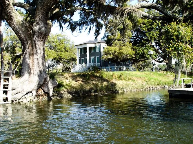 Brookland Plantation on Edisto Island boast historic features listed on the National Register of Historic Places and substantial frontage on Shingle Creek . It contains diverse habitats including maritime forest, saltwater marsh, sandy areas, orchards, evergreen upland forest, and open water. The Greek Revival house was built circa 1803 and totally restored in 2004. During its most recent renovation the house was painted a pluff mud color to blend into the tree trunks and surroundiing landscape. The views include spectacular marsh vistas, an open pecan grove, a pond and numerous live oaks draped in Spanish moss. The plantation's traditional uses are protected under a conservation easement with the Low Country Open Land Trust.