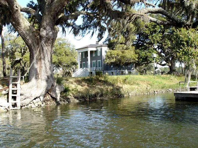 Brookland Plantation on Edisto Island boast historic features listed on the National Register of Historic Places and substantial frontage on Shingle Creek . It contains diverse habitats including maritime forest, saltwater marsh, sandy areas, orchards, evergreen upland forest, and open water. The Greek Revival house was built circa 1803 and totally restored in 2004. During its most recent renovation the house was painted a pluff mud color to blend into the tree trunks and surroundiing landscape. The views include spectacular marsh vistas, an open pecan grove, a pond and numerous live oaks draped in Spanish moss. The plantation's traditional uses are protected under a conservation easement with the Low Country Open Land Trust.
