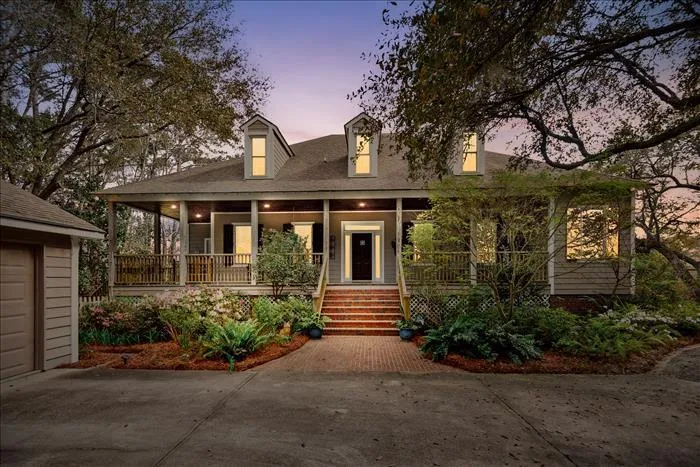 Welcome to Cain River Cottage by Southern Living homes on over 4 acres.The giant Oak trees greet you as you drive up to this 3-bedroom, 3 bath home with an office and a rec or playroom. Everything you need is here, a stunning view of the Wando River with dock in place, your own in ground saltwater pool, and a detached garage for 3 cars plus a golf cart carport. The barn with garage doors can hold at least 3 more cars and there is an electronic system to raise your boat. Next to the garage is your own private gardening shed with hot and cold running water and a spot to bathe your pet. As you enter from the front porch an office with built-ins and full bath is on the right and the large formal dining room is on the left. The great room ahead has a full view of the Wando Riverand leads you to the screened porch that runs the length of the back of the house and the brick patio. The kitchen o...