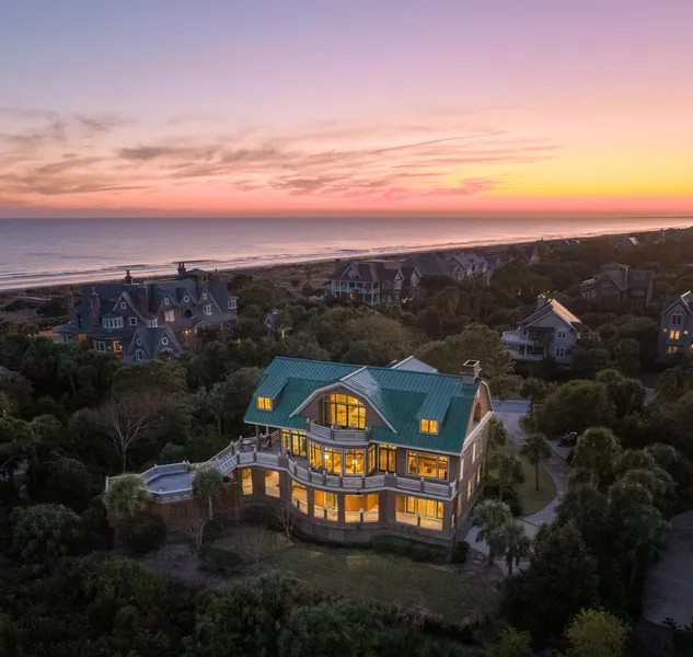 Launch your Kiawah Island lifestyle with a spectacular, custom built Koenig Construction cedar shake home, privately situated on .75+/- acres directly across from the Atlantic Ocean and the Kiawah Island Beach Club! Savor panoramic vistas of Kiawah's famous Ocean Course, Ibis Pond and enjoy your sports membership to the Kiawah Island Club! Offering 6,250+/- square feet with six bedrooms and six and one half bathrooms, this beautiful home is saturated with natural light and is located on a premier street on the island. The first floor offers four guest bedrooms, all with en suite bathrooms, ten foot ceilings with crown moldings, a laundry room and a four-stop elevator. A custom dual staircase with a wrought-iron railing and etched glass takes you to the main living area on the second floor, which consists of a great room, dining area, kitchen, media room and separate office. The great room is surrounded by a circular wall of dual pane Pella windows, giving you expansive easterly views of the ocean, pond and golf course. The dining area, which is suspended over the downstairs foyer, is framed by etched glass panels with faux painted iron pickets. The spacious kitchen provides dual islands, custom maple glazed cabinets and is accompanied with Dacor and GE Monogram appliances. A large deck stretches the entire rear portion of the second floor of the home allowing for great outdoor living and entertaining. Sprawling across the third floor is the luxurious master suite, showcasing a soaring shiplap millwork ceiling. The master bathroom includes twin vanities, walk-in shower, Kohler soaking tub, dual walk-in closets and a private deck with the best ocean views in the home. There is a sixth bedroom and bathroom just off the master suite, perfect for children or guests. Additional features include a bluestone and brick entrance walkway, a beautifully landscaped yard with outdoor lighting and irrigation, a standing seam Gambrel metal roof, a three-car garage and screened porch. Yes, there is room for a pool! The home is also on a rental program and generates a significant amount of income. Don't miss this opportunity to see this amazing home!