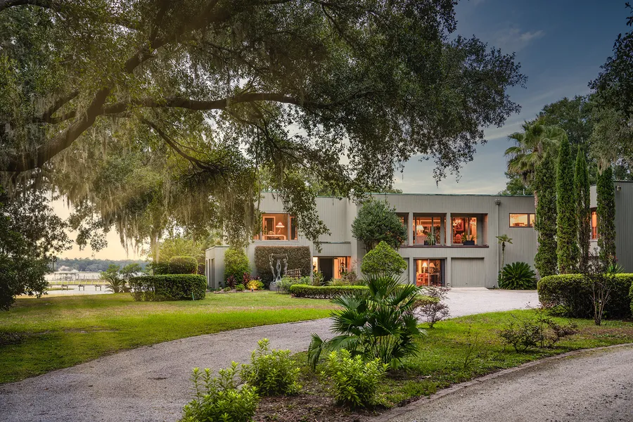 Experience stunning and breathtaking panoramic views of the South Carolina Lowcountry from this magical 14.4+/- acre parcel on the Intracoastal waterway. Entering through the iron gates, the driveway winds down to the water, surrounded by majestic live oaks and lush native woods. 4180 Chisolm Road features a private island with a deep water dock offering a large pier head and three boat lifts. The home sits on a high bluff overlooking the waterway and salt marsh, with a large pool benefiting from the beautiful views. Inside the two-story contemporary home find a first floor family room overlooking the pool, full kitchen, and two guest bedrooms sharing a full bath. Up the stairs, you'll find another full kitchen, family room, breakfast nook, and the current master suite with an attached room being utilized as an office now.