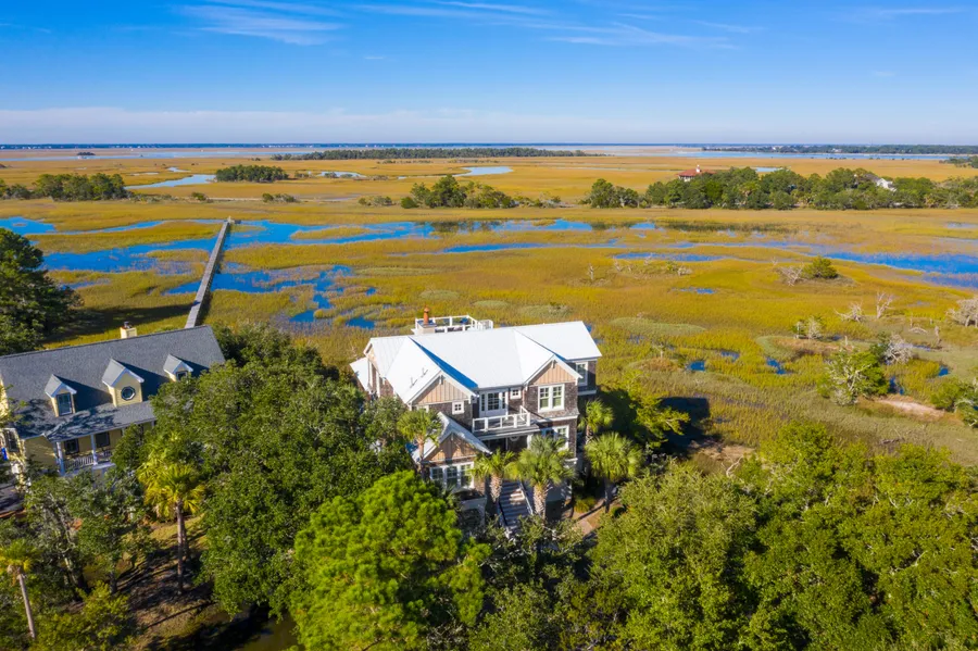 Here at 40 Seagrass Lane you can enjoy true resort style living at it's finest with more than 4600 square feet of elegant living space on one of the most picturesque lots in Wild Dunes. This stately custom built marshfront escape by Phillip Smith was thoughtfully designed to capture panoramic views of the marsh from almost every room in the home and magnificent details are showcased throughout this masterpiece with the finest materials, finishes and technology. The gourmet kitchen features beautiful custom cabinetry, along with a large island and all of the culinary necessities to host any gathering. A separate wet bar adjacent to the dining area provides a wall of cabinetry to store your wine and libation glassware along with a built-in wine cooler and ice maker. Granite countertops aprofessional style appliances round out the kitchen's features. The kitchen flows seamlessly into the family room, which offers a cozy fireplace and French doors leading to covered porch and deck to enjoy summer evenings and al fresco dinners with family and friends. For effortless entertaining, the outdoor bar offers a sink and refrigeration. Adjacent to the kitchen is study with a pocket door offering an ideal office to work from home. The owner's suite located on the main floor offers expansive views of the marshes and waterways and has a luxurious bath with soaking tub and spa-like stone tiled shower and floors offering the perfect setting to unwind and retreat. Also on this level, is a generously sized private guest suite with a full bath. Take the staircase or elevator to the second floor, and you'll find an open sitting area ideal for board games as well as a full size den to one side of the staircase. The room is accessorized by glass doors opening to a private second-story balcony with expansive views of the marshes and waterways. Completing this level are three guest suites, with the rear Westward corner suite featuring his-and-hers sinks as well as dual closets and vast marsh views. You don't want to miss the spiral staircase that leads to a rooftop deck with breathtaking views that span from the Ravenel bridge across the marshes and barrier islands. This 1.34 acre lot is located in the quiet, and peaceful "outer islands" area of the resort, this wide open, expansive lot has unobstructed marsh views that extend all the way to the Intracoastal Waterway. There is a private neighborhood crabbing dock steps from your front door as well as a beautiful boardwalk that meanders across the marsh right to the beach! This is truly a perfect setting amidst the natural wonder of the ever-changing tidal marsh. You will enjoy watching the changing colors of the marsh grass through the seasons from emerald green in the summer to a golden wheat color in the fall and winter. The marsh is filled with colorful birds including great blue herons, egrets, glossy ibis and much more. Wild Dunes is a prestigious gated community that offers residents resort living with golf, tennis, pools, a fitness center and so much more. This premier property extends the ideal Lowcountry lifestyle with beautiful beaches within walking distance and easy access to boating, fishing, crabbing, kayaking & paddleboarding. You can also immerse in fine dining, shopping and cultural arts and entertainment with Historic Downtown Charleston just 25 minutes away. So, if you have been looking for an elegant home to impress or the perfect setting to raise your family, don't miss this opportunity to live your best life in the heart of the Lowcountry at 40 Seagrass Lane.