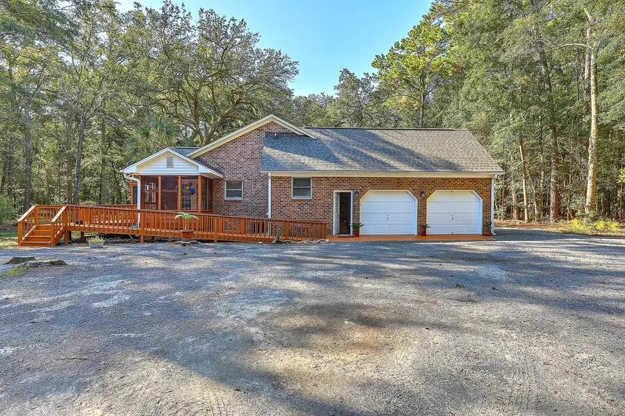 Welcome home to Middleton Plantation on Edisto Island. This single-story home is nestled on over 9 acres of wooded property.This is an all brick, three bedroom, two and half bath home. The large owner's suite features dual closets, tray ceiling, and dual vanity bowls. The second bedroom will accommodate a king size bed as well. All bedroom closets are lighted. The bathrooms have new faucets. The kitchen has ample cabinet and countertop space with an adjacent dining area. The family room is large enough for entertaining, with two French doors leading to the two screened porches. New pine flooring beautifully accents the family room and bedrooms. As you enter the home from the two-car garage you'll find a large laundry room. This property is a ''MUST SEE'' with its ample storage. Above the