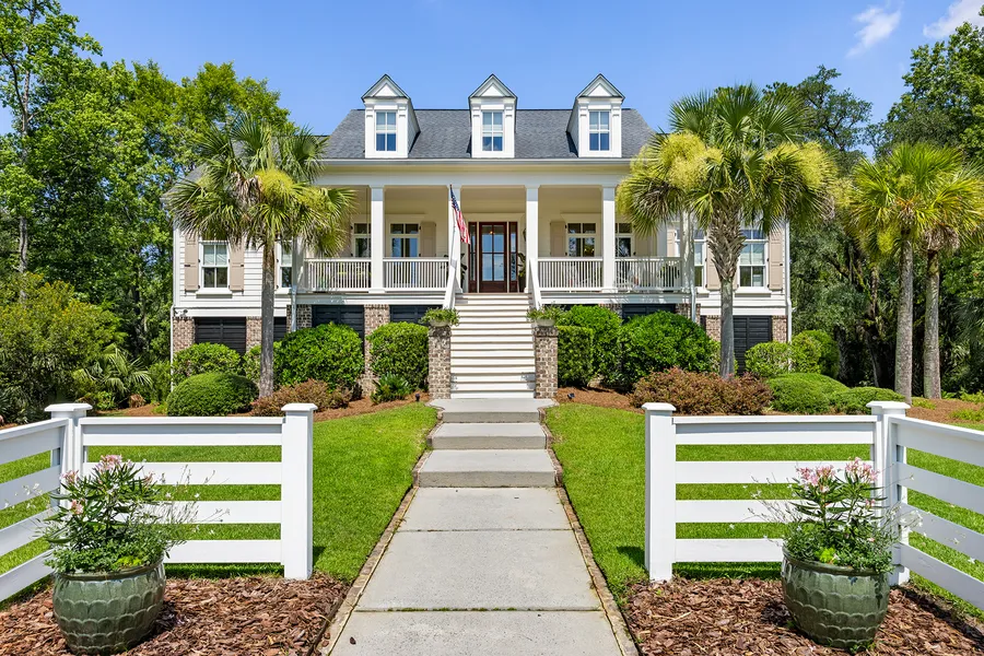 Enjoy magnificent views over Bounty Square from this classic Low Country custom home nestled on a private lot with mature landscaping and moss-draped oaks in the prestigious Beresford Hall neighborhood. An entertainer's dream, this property comes with a private screened-in back porch and an open layout that flows from the porch into the living room and kitchen spaces. This house offers almost 4,000 square feet with ten-foot ceilings, an ideal floor plan, and extensive millwork, including oversized solid wood doors and custom cabinetry and closets. The classic kitchen provides an eight-foot island, deep custom drawers, stainless steel appliances, and a gas cooktop with an adjacent pantry. Off the formal dining room, there is a separate bar area and guest powder room.