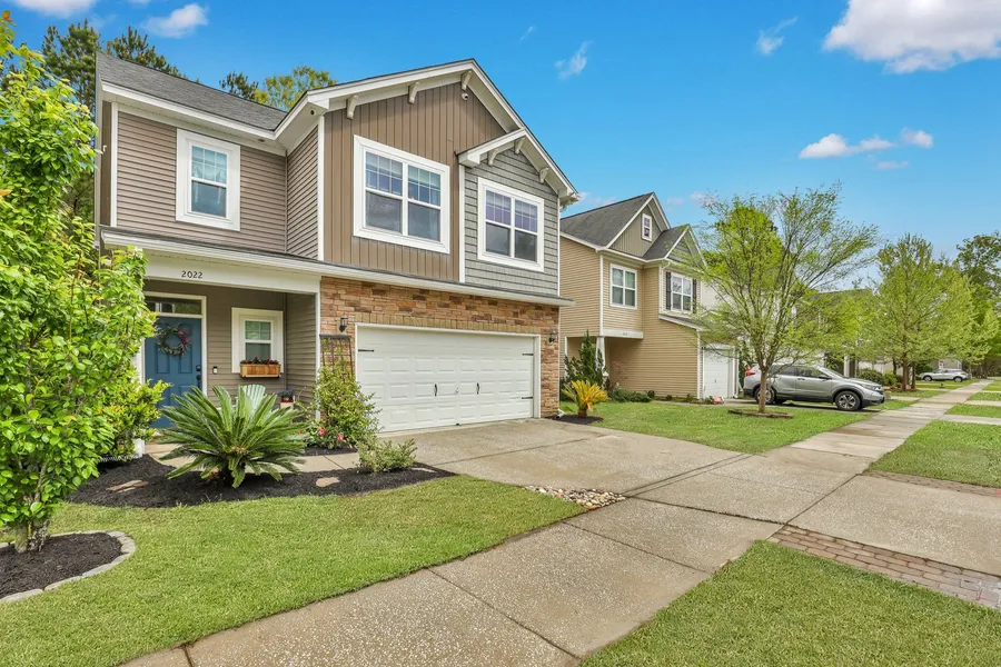 The Woodlands neighborhood in West Ashley offers a convenient commute of only 15-25 minutes to downtown Charleston. This residence features an open-concept design comprising three bedrooms and two and a half bathrooms, complete with a versatile third-floor flex space that would make a spacious bedroom and a second-floor loft. Upon entering, the foyer grants access to a powder room and the garage. The main living area boasts a gourmet eat-in kitchen with ample storage and a pantry, complemented by a dining space opposite counter seating, a family room, and direct access to the fenced-in yard and patio. The second floor leads right into a versatile loft area (idea for an office, play area, or secondary sitting room).