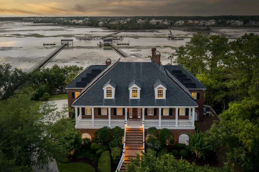 This exquisite deepwater estate is found within one of Charleston's most coveted neighborhoods, Brickyard Plantation zoned to Mt Pleasant schools. A magnificent 3+ acre waterfront property features the epitome of relaxed luxury living. The serene waters of Horlbeck Creek provide quick access to Charleston Harbor via the Wando River. Boaters will appreciate the deepwater dock, which includes a covered pierhead, boatlift & a 30-foot floater equipped with water and shore power. The terraced backyard features a custom saline pool with beach style entry and graduated depths from 4 to 11 feet for you to dive right in! A spectacular sun deck has an outdoor kitchen, lounge area, shower, plus a wood burning stone fireplace with gas assist. The interior is equally as grand as the exterior ground.
