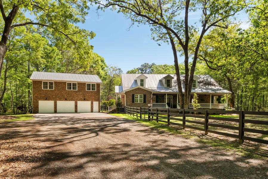 Welcome to 5680 Dixie Plantation, a serene countryside estate offering the best of both worlds: peaceful privacy on just under 14 acres and convenient access to downtown Charleston, only 30 minutes away. This quality custom-built, all-brick home features over 3,000 square feet of thoughtfully designed living space with 10-foot ceilings, walnut inlay on natural heart pine floors, and a new metal roof in 2018. Outdoors, enjoy your own personal retreat with a saltwater pool and expansive patio surround, perfect for entertaining or relaxing in nature. The enclosed gardening area features fully irrigated raised beds with sitting ledges, ready for your very own farm-to-table experience. For guests, extended family, or potential rental income, a charming 1-BR, 1-BA guest house adds 1073 SF of living space. It includes a full kitchen, living area, and a separate electric meter, perched above a spacious 3-car garage and workshop.