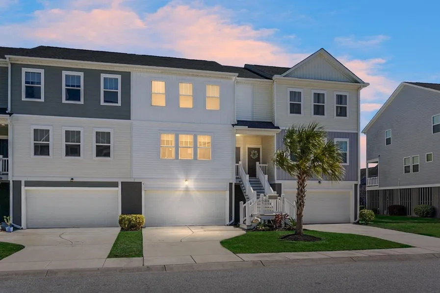 Welcome to 305 Lanyard Street -- an elevated, elegant townhome in the vibrant heart of Charleston. Nestled on John's Island just beyond West Ashley, this thoughtfully designed residence offers both convenience and tranquility, with an easy commute to downtown Charleston and proximity to all the Lowcountry has to offer. Built on elevated construction, this home not only provides peace of mind but also generous covered parking and versatile storage space below. Step inside to discover an open-concept main floor, flooded with natural light from expansive front-facing windows. The spacious layout is ideal for both relaxed living and entertaining, with room for an eight-person dining table and a cozy sectional in the living area. The elevated kitchen is a host's dream, completewith a large island perfect for charcuterie boards, wine, or game night gatherings. You'll find a walk-in pantry, a potential elevator shaft for future convenience, and a stylish half bath for guests. From the covered back deck, enjoy morning coffee or unwind in the evening as you overlook the serene pond and its visiting wildlife. Upstairs, three spacious bedrooms and two full bathrooms await. The primary suite is a true retreat, quietly positioned at the rear of the home with calming views. The en suite bath features a frameless glass walk-in shower, dual vanities, and a private water closet. A beautifully designed laundry room, reminiscent of your favorite home makeover shows, adds a touch of luxury to daily living. The additional space for a future elevator is mirrored on this level, providing even more storage flexibility. The current owner has thoughtfully enhanced the home with stylish upgrades, including a custom drop zone, tasteful decor accents, and designer finishes
