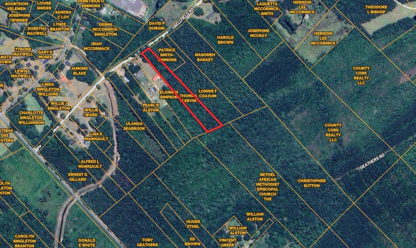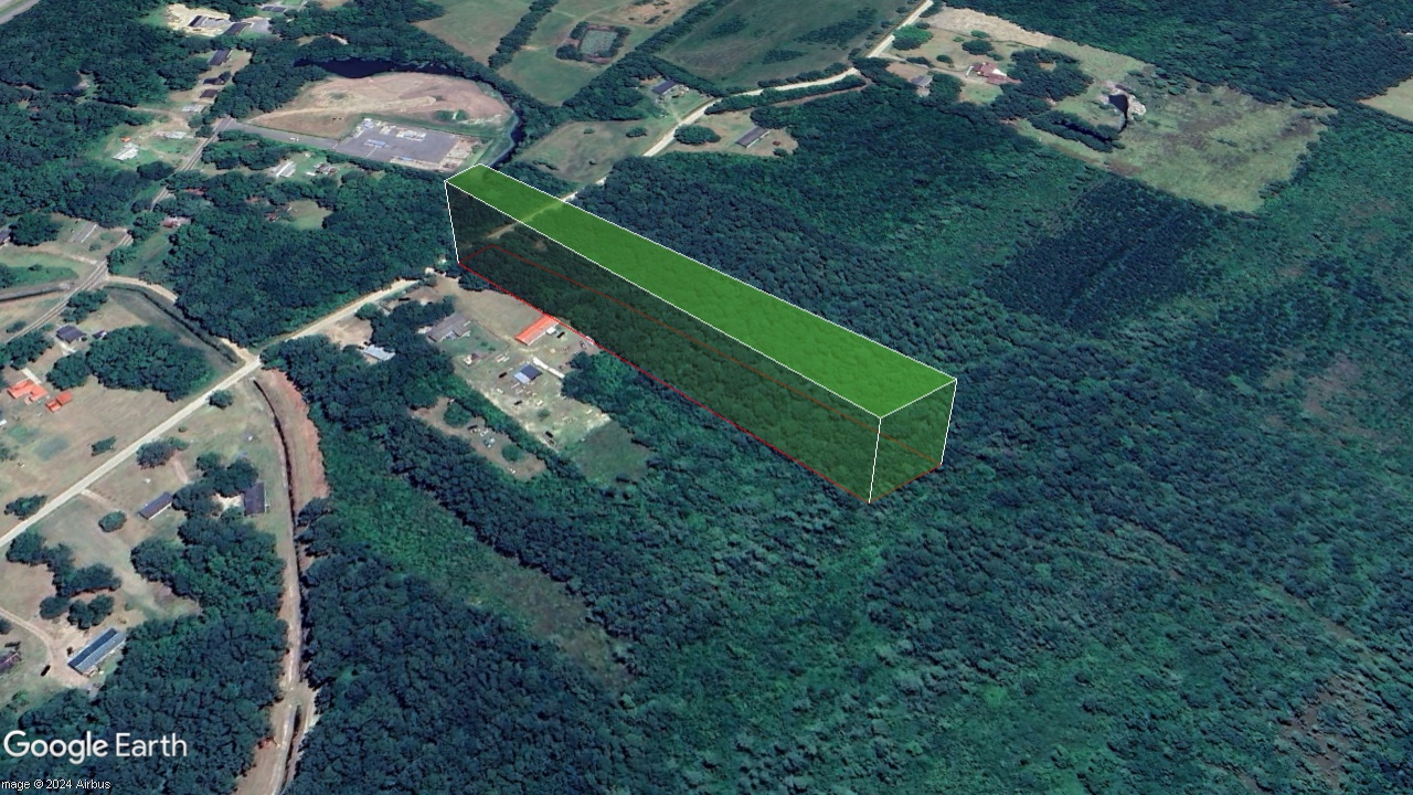 Coordinates: NW corner: 33.1136, -79.4522 (Road) NE corner: 33.1137, -79.4520 (Road) SW corner: 33.1117, -79.4503 SE corner: 33.1119, -79.4499