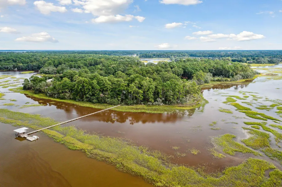 Very private 8.8-acre double lot with deepwater access on Leadenwah Creek, sunset vistas and a wonderful southwesterly breeze - conveniently located 35 minutes from Downtown Charleston. The three-bedroom cedar plank home is perfectly situated to enjoy expansive waterfront views from the main living areas - especially the large screened-in porch and deck. Recent updates include a chef's kitchen with massive granite island, built-in wine coolers, shiplap walls, heart pine floors, 10 ceilings, two wood-burning fireplaces, and a high-end outdoor kitchen. The deepwater dock has a large, covered pier head with seating and storage, a covered 13,000 lb boat lift, 20 floater and 15 jet dock. 8' water depth measured at low tide off floater. The verdant landscaping includes several varieties of pollinator-friendly shrubs, fully irrigated by two wells and a 2,000-gal. rainwater collection system. Ot...