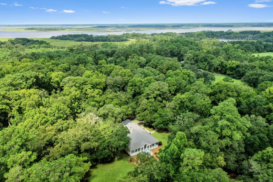 A nature lover's retreat on almost fifteen acres of secluded, mature hardwoods and old growth azaleas. Perfect for those seeking to escape the bustling city of Charleston, 1433 Martins Point Road provides a serene haven where you can truly unwind. A virtual wildlife sanctuary, you will see deer, turkeys and a plethora of bird species right from your own backyard. The custom-built, single-story home has been thoughtfully updated with modern touches, including custom cabinetry, elegant quartz countertops, and top-of-the-line stainless steel LG appliances. The bathrooms have been beautifully renovated with ceramic tile flooring and stylish tile showers. A wonderful large screened-in back porch allows for easy entertaining, grilling and simply relaxing.