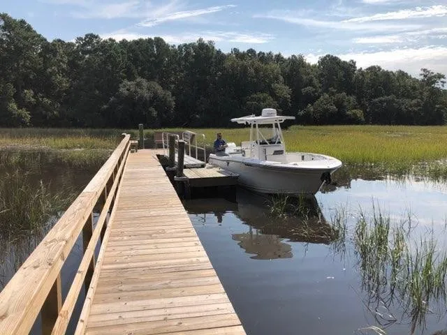 Unbelievable opportunity to build in this neighborhood with 9 lots. Almost new dock and floater with lots of new upgrades provide lush marsh and creek views. Lot is adjacent to neighborhood boat ramp making it easy to put your boat in the water. Seller has rebuilt the dock adding new rails, new stainless steel cable guides, new ramp for floating dock and new pilings with pilings for future boat lift. Low tide is 4 ft which gives about a 1.5 hr window on each side of the tide that boat can't get through. 2 homes for over $1,000,000 have closed in the last 6 months. There is water, sewer and electric at the site. 2500 minimum sf home.