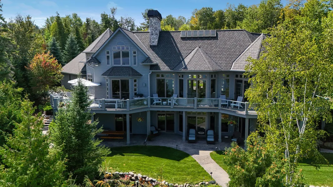 Welcome to this beautiful Lake Charlevoix waterfront home! Privately nestled on a 9 acre estate-sized parcel with an impressive 202 feet of shoreline, this exceptionally designed masterpiece boasts 6377 square feet of finished living space on 3 levels. Featuring 6 lake-view bedrooms, 4.5 baths, a 3 car attached garage, and 4 fireplaces, this is the home for year-round luxury lakefront living. Originally designed and built in 2001 by renowned Charlevoix architect, H. Jack Begrow, this home was professionally re-designed with new finishes, decor, lighting, and landscaping elements which truly bring sophisticated taste and style to meet the ''up north'' lake life. Sold turnkey with all interior and exterior furnishings and dock included. This location has everything needed for those