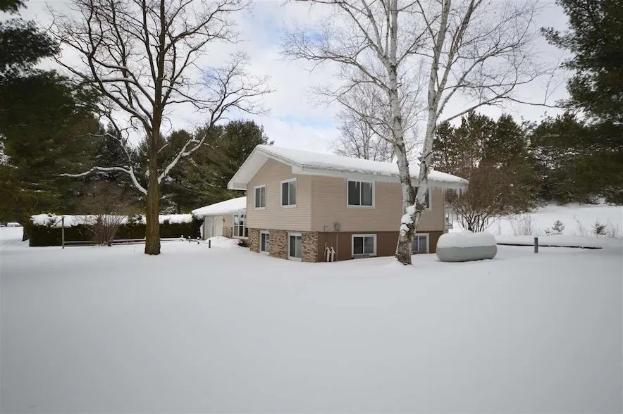 Close to everything Northern Michigan has to offer this three-bedroom, one-and-a-half-bathroom house is located just outside of Boyne City. Situated on a one-acre lot near the golf course side of Boyne Mountain, the house offers a private setting and a spacious, park-like yard. The main living room features a wood stove, and there is a large family room on the lower level that could potentially be used as a fourth bedroom while still providing additional living space. A slider from the dining area opens to a large, tree-shaded private deck, offering extra living space during the warmer months. This home is a great opportunity for individuals visiting the area for short trips as well as for families looking for a lovely permanent residence.