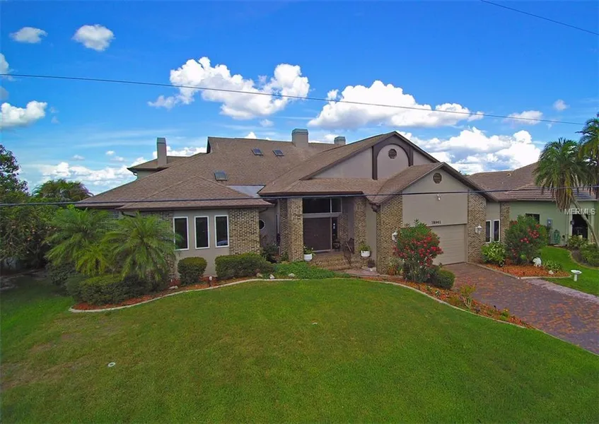 Custom built home with many extra features. Sailboat waterway, only five minutes to Harbor. Extra wide canal with beautiful views from every room. A small fish pond at the entrance of the home provides a warm welcome to all visitors. Boasts a gourmet kitchen with Corian countertops, two built in refrigerators, two dishwashers, two separate ovens, one with a range, and two separate sinks with disposals. A beautiful 8ft custom chandelier installed in the 26 ft ceiling of the open great room. Four fireplaces, 3 water heaters, 3 a/c's so you can control the rooms individually. Bedrooms have extra storage along with walk-in closets. The enclosed 1200 sq. ft lanai is extra living space with a large built in 10 person spa and a Teppan Yakki Grill for year round entertaining. A new elevator installed in the garage for handicap entrance. The rooms are all assessable. The home is built on high ground so Flood Insurance is only $423.00 per year. This custom home is one of a kind. Home is being sold As Is.