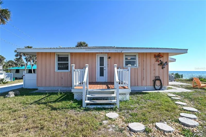 Beachfront Sanctuary! Welcome to this DIRECT BEACHFRONT, 2 Bedroom, 1 Bath charming Beach Bungalow. This TURNKEY, rare GEM sits on over a .34 acre, with 100 ft of beach frontage on the Gulf of Mexico and offers authentic ISLAND LIFE. If the Ocean is your playground, then this is the property for you! Whether you've dreamed of living directly on the BEACH, or wanted a WINTER getaway, or just looking to diversify with an INVESTMENT property, here is your chance! Any moment of the day step outside and put your toes onto the pillowed sands of the Gulf of Mexico, then take a dip in the calm crystal-clear blue waters with pure ease at your convenience. Enjoy longs walks on the beach collecting shells and taking in all the Natural Beauty, and you will be in awe spotting Dolphins joyfully playing. Bask in the romance of breathtaking sunsets from your backyard beach EVERY night or share the picturesque landscape with friends over libations and charcuterie. The peacefulness of BEACH life is truly contagious, you will not want to leave! Ideally located in Pelican Shores West, with no deed restrictions, no rental restrictions, optional $200.00 HOA, and access to a Boat Dock across the street on a first come basis- but no overnight docking. Just walk, bike or take a short drive to all Manasota Key happenings! Perfectly located between Sarasota and Naples. As a Waterfront Investment property, it has a great Airbnb income of $45,00 + annually (was not up and running to capacity in 2022) currently have bookings thru 2023 that can convey. Keep as is, or create your own dream home. Details can be made available to all qualified buyers. CTG 6 next door also for sale MLS A4559636. Beachfront property is limited, call for your private tour today!