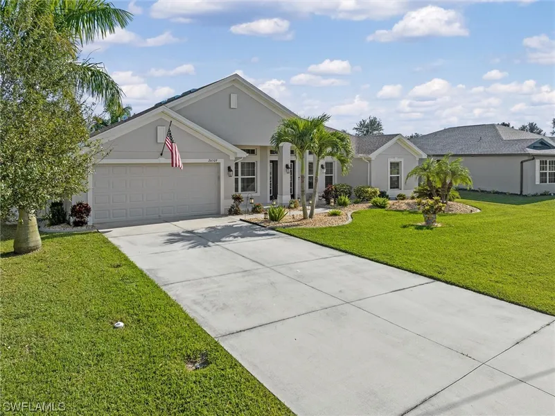 With motivated sellers and a recent price improvement, this charming property is now even more appealing to potential buyers. Offering a seamless blend of modern comfort and timeless Florida charm, this home promises an idyllic living experience. Located in a peaceful neighborhood, it provides a tranquil escape while still being conveniently close to all amenities. This 4-bedroom, 2-bath, 2-car garage home, built in 2018, features a well-appointed kitchen with granite countertops and new stainless-steel appliances, overlooking a spacious tiled living and dining area. The master bedroom, positioned at the back of the home, boasts two walk-in closets and a newly tiled master bath. The remaining three bedrooms, situated on the opposite side, each offer generous closet space and share a full bath. Step outside the living room to discover the heated saltwater pool, enclosed by a screened lana...