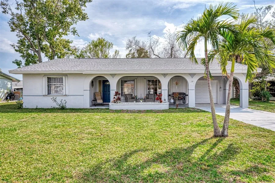 LOCATION. LOCATION. LOCATION. Discover the perfect move-in-ready home in a fantastic amenity rich community of GARDENS OF GULF COVE near several Gulf beaches! NO FLOOD ZONE! Property stayed high and dry through the last few storms and has never flooded. The community boasts 4 lakes, underground utilities, sidewalks, street lights, county water and sewer, and a full-time manager. For an affordable yearly fee of $420.00, residents enjoy access to TWO COMMUNITY POOLS (one heated), tennis courts/PICKLEBALL, shuffleboard, bocce play, a basketball court, rec. center, exercise equipment, pool tables, and a friendly atmosphere. Convenient TO GULF BEACHES, fishing, shopping, dining, and entertainment just minutes away, this property in paradise awaits your visit.