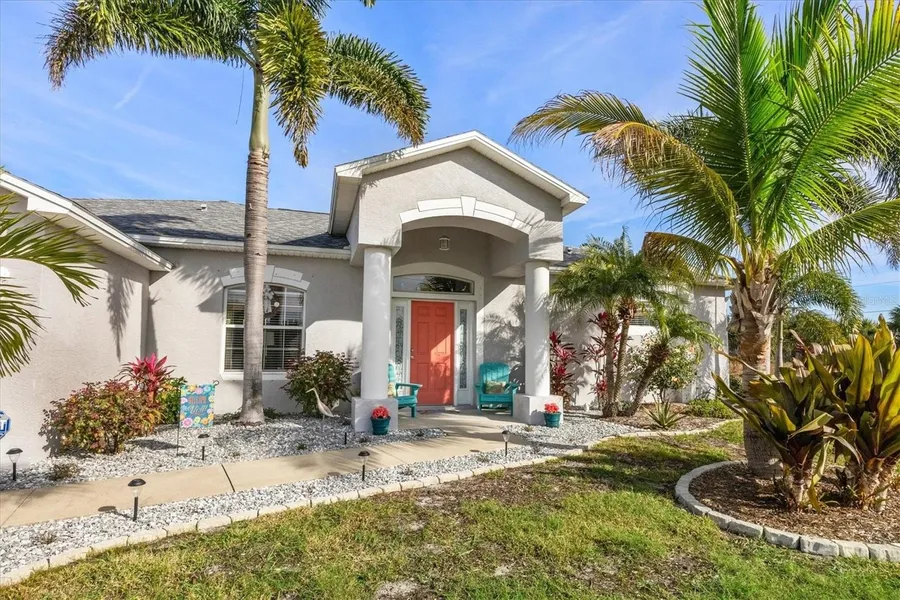 Welcome to this stunning South Gulf Cove retreat—an impeccably maintained heated pool home set on a sprawling DOUBLE CORNER LOT. From the moment you step inside, coastal elegance and abundant natural light create a warm, inviting atmosphere. Designed for both comfort and entertainment, the home offers formal and casual living and dining spaces, all enhanced by custom bamboo blinds that elevate the coastal aesthetic.